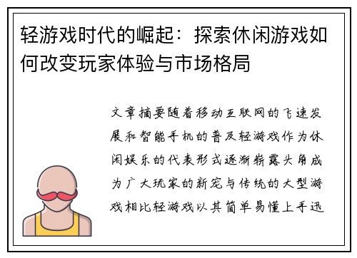 作为一支年轻而充满活力的团队,EVO视讯真人在行业内迅速崭露头角。公司的成立初期,专注于移动端游戏的研发,并凭借出色的产品设计与优质的用户体验,取得了市场的高度认可。随着技术的不断进步,EVO视讯真人逐渐扩展其业务范围,涵盖了PC端、主机端以及VR等多个平台,逐步发展成一个跨平台、多元化的游戏公司。